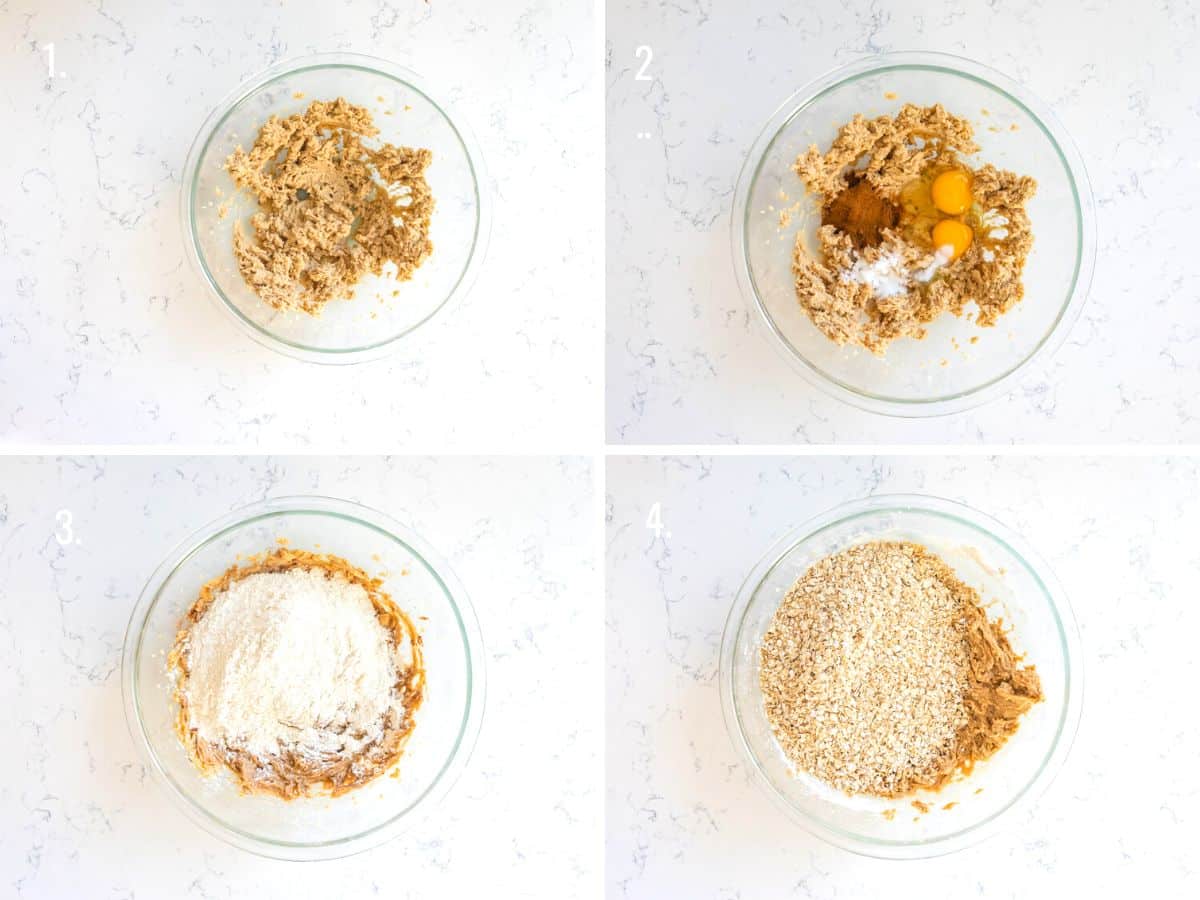 - Gradually mix in dry ingredients until smooth, being careful not to over mix. Add oats and mix until all combined.