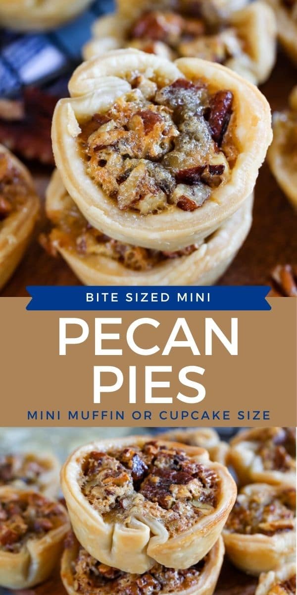 I’ve turned my easy pecan pie recipe into MINI pecan pies in TWO sizes using a mini muffin pan and a regular size muffin pan!