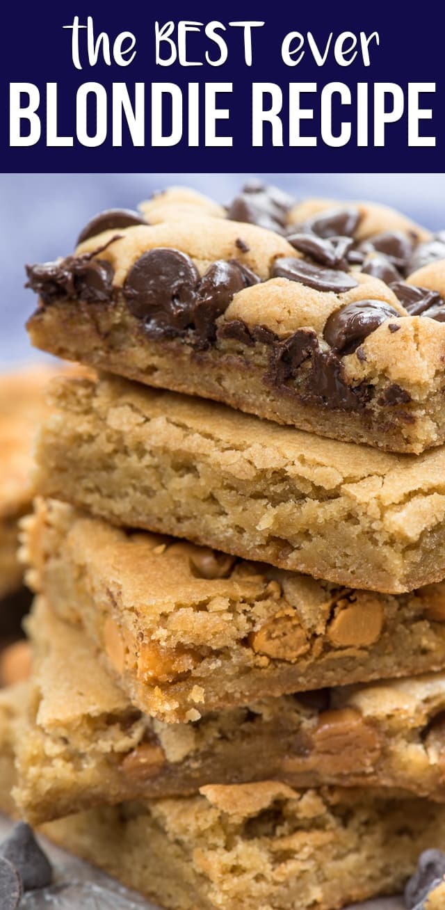 This is the ONLY Blondie Recipe you need! These easy blondies are fudgy cookie bars full of your favorite candy or chocolate chips. I’ve been making this recipe in different ways for YEARS and it’s the best.
